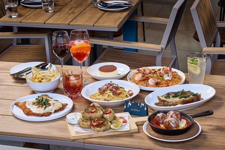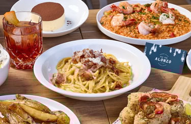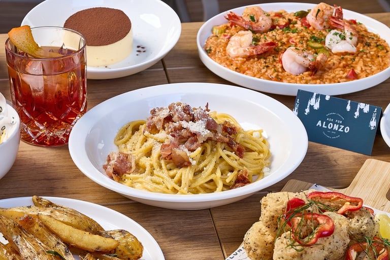 於其他分店一樣,沙田分店提供多款經典招牌菜式,包括 : Alonzo 招牌卡邦尼意粉(HK$168)採用意大利雞蛋混合Parmigiano芝士、風乾豬面頰肉及黑胡椒,調製出的濃郁醬汁;佛羅倫斯意大利雲吞 (HK$158),手工製大利雲吞餡料為羊奶芝士及菠菜,配上鮮甜番茄羅勒醬;經典意大利千層麵 (HK$168),慢煮牛肉香氣滿溢配上意式蕃茄肉醬;大蝦露苟意大利燉飯(HK$178),意⼤利米加入自家熬製的龍濃湯燉飯,最後加入香煎彈牙大蝦及清脆露苟。