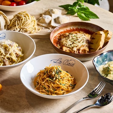 La Baia, meaning 'The Bay' in Italian, draws inspiration from sun-kissed Mediterranean coasts. Diners can anticipate the comforting flavours of Italy, cast through a comforting Mediterranean accent. The menu showcases rotating seasonal dishes, a selection of hand-crafted pizzas, and freshly made pastas, all inspired by the traditional Italian family kitchen, where each dish is created from scratch, offering a heartfelt culinary experience.