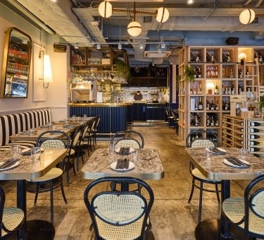 The cocktail selection includes refreshing signatures such as Elderflower Fizz, bright with vermouth and citrus; Lillet Spritz, a spirited mix of Lillet Blanc vermouth, grapefruit and tonic; Kir Louis, a refined twist on the classic apéritif with white wine and crème de cassis blackcurrant liqueur; and Almost Amaretto, blending gin with apple and almond for a subtly indulgent sip. With many more options to explore, À Poêle’s happy hour sets the tone for an effortlessly chic French‑style celebration.