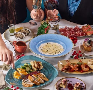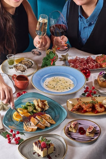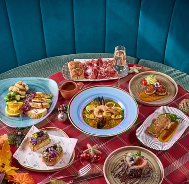 Quiero Más 為客人呈獻聖誕節晚餐套餐,於 2025 年 12 月 25 至 28 日(星期四至星期日)晚 上6 時至 9 時供應,讓聖誕節的歡樂延續整個週末。每位 HK$398,即可享用四道共享小食、自選一道主菜及甜品。