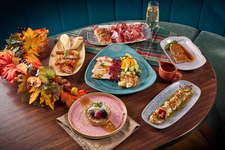 Quiero Más 誠邀客人於感恩節期間享用以地中海風味為主題的節日晚宴。菜單以伊比利火腿的鹹香豐富搭配海鮮的新鮮鹹味,主菜包含應景的慢煮嫩滑多汁火雞,完美致敬感恩節傳統之餘,同時融入風味盎然的南歐佳餚與全景城市夜景的典雅結合,正是與親友共度佳節的理想選擇。感恩節盛宴於 2025 年 11 月 27 日(星期四)及 11 月 28 日(星期五)晚餐供應,每位 HK$498,套餐包括四道共享前菜、火雞主菜及節日甜點,需提早訂座。