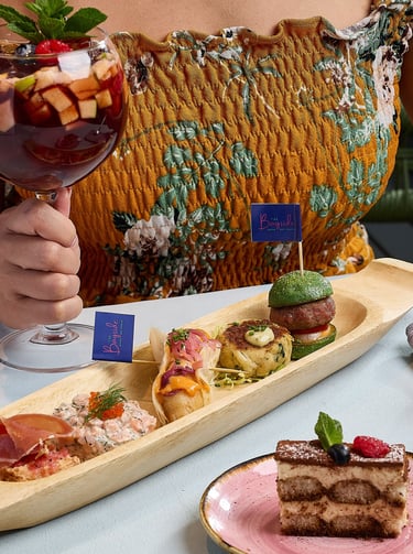 The Bayside’s Afternoon Tea Platter places Mediterranean-inspired comfort dishes centre stage, featuring Jamón Ibérico served with crusty Crystal Tomato Bread; Salmon Tartare; a Crab Cake made with fresh crab meat, mayonnaise, Tabasco and mustard, pan-fried for a crispy exterior and juicy interior; a Fish Taco crafted from battered fresh cod, topped with crunchy slaw; a Wagyu Beef Slider crowned with its own flavourful richness; and an indulgent sweet finish with a Creamy Tiramisu that provides a light counterpoint to the savoury offerings.
