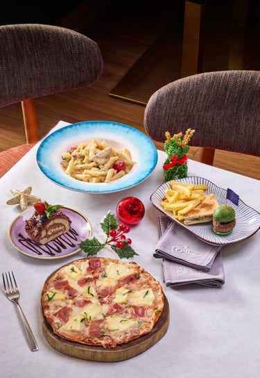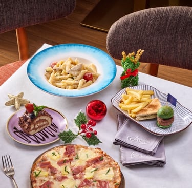 餐廳更設有為6至12歲兒童供應的聖誕節兒童套餐。套餐每位HK$198,包括和牛迷你漢堡、松露烤三文治及炸薯條。以及自選一份主餐,例如:夏威夷薄餅、烤火雞肉配忌廉醬意粉或是雞肉及粟米芝士通心粉,並以香甜的朱古力聖誕樹幹蛋糕作節日的完美結尾。