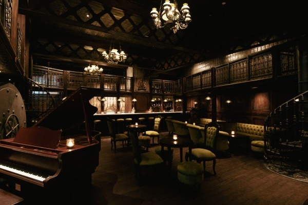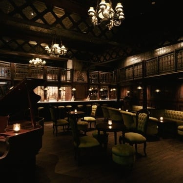 The bar's intimate setting and dim lighting, courtesy of art-deco-style vintage pendant ceiling lamps, create a warm and sensual atmosphere. Other design highlights include vintage, green-coloured velvet chesterfields and bar stools to match the hand-crafted wooden tables; decorative sculptures in different sizes; and, as a centrepiece, a grand piano. Each carefully selected element creates an unashamedly sexy and intimate space that instils a sense of mystery, intrigue and luxury.